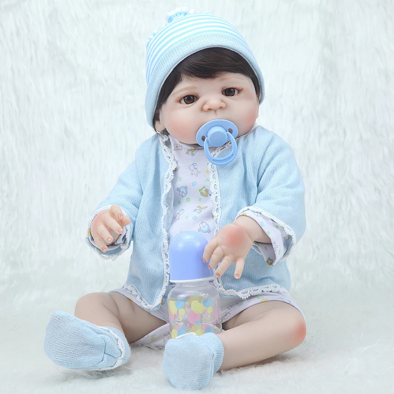 Very Good - 55CM Reborn Baby Boy Doll Toy Full Silicone BlueSweater Cloth Body Short Hair Realistic Baby Doll Toddler Kid Accompany Gift