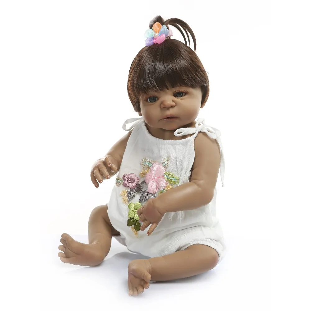 Very Good - 55cm Full Body Silicone Reborn Baby Doll Toy 22inch Black Skin Newborn Girl Princess Toddler Babies Doll Child Bathe Toy