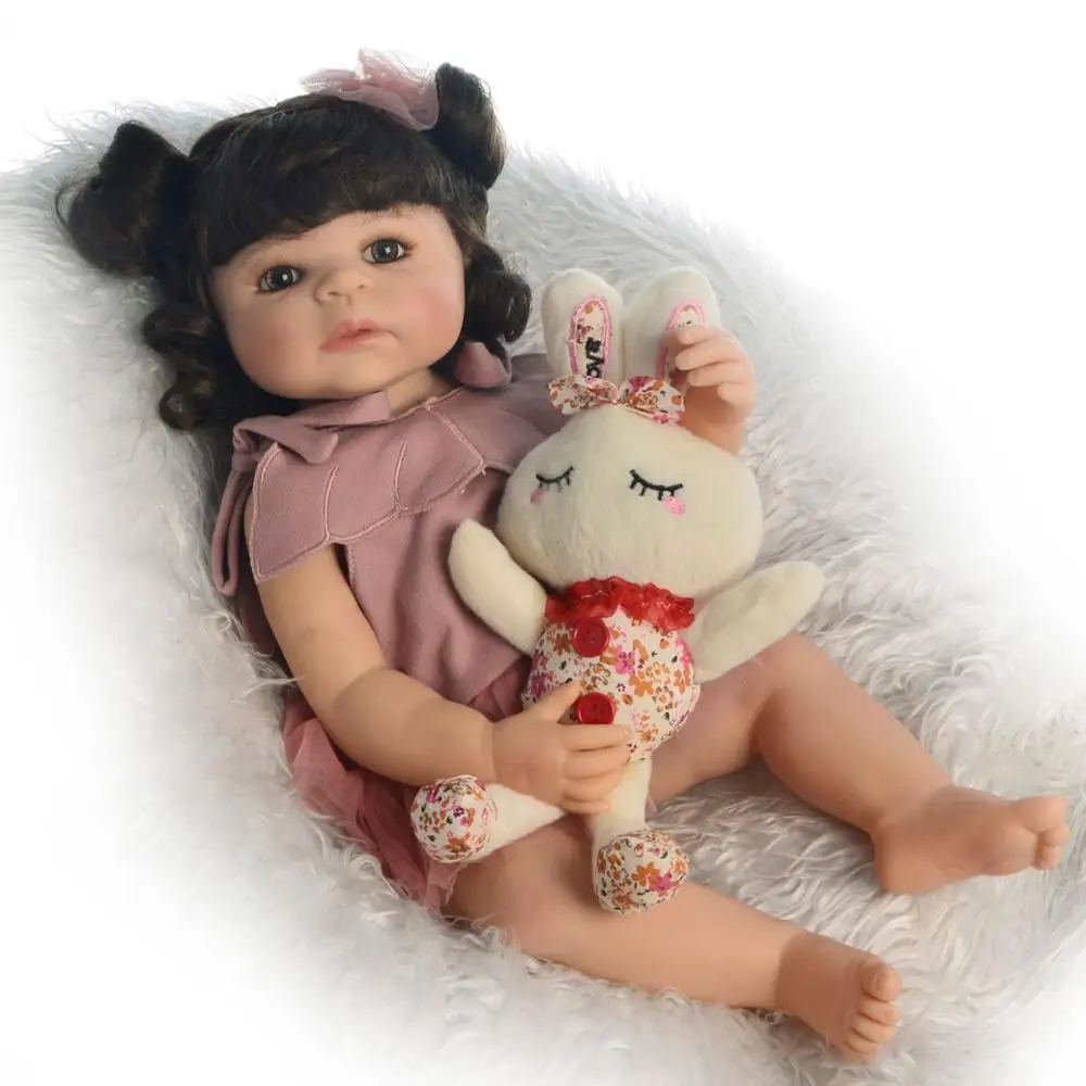 ^Cheap - bebe girl Reborn Baby Doll 22 inch Vinyl Doll brown Hair silicoen Body Alive toddler Baby Chiristmas Gift Kids toy Fast delivery Very Good