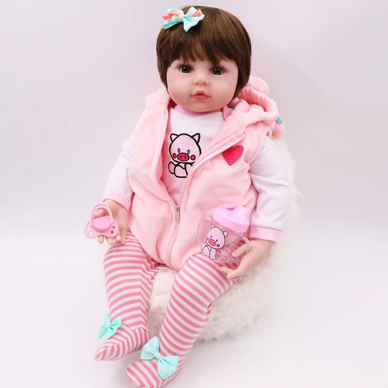 Online - Children Reborn Baby Doll Toy 48CM Soft Silicone Cute Pig Cloth Body Short Hair Realistic Baby Doll Toddler Kids Pretend play Best Price