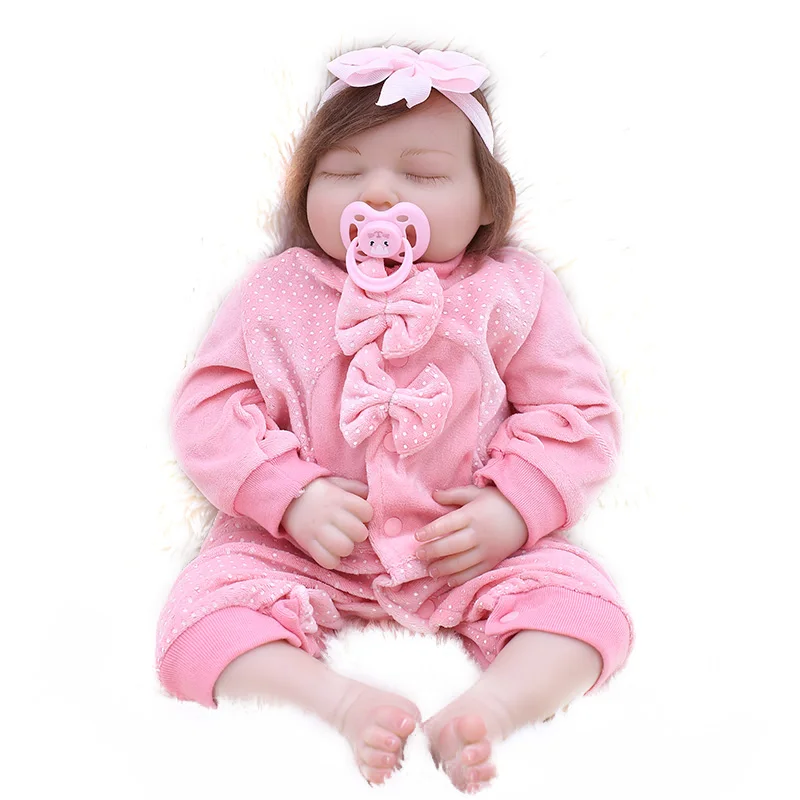 Wonderfull - 48cm Cloth Body Lifelike Toddler Sleeping Baby Girl with Pink Siamese Clothes Silicone Reborn Baby Dolls