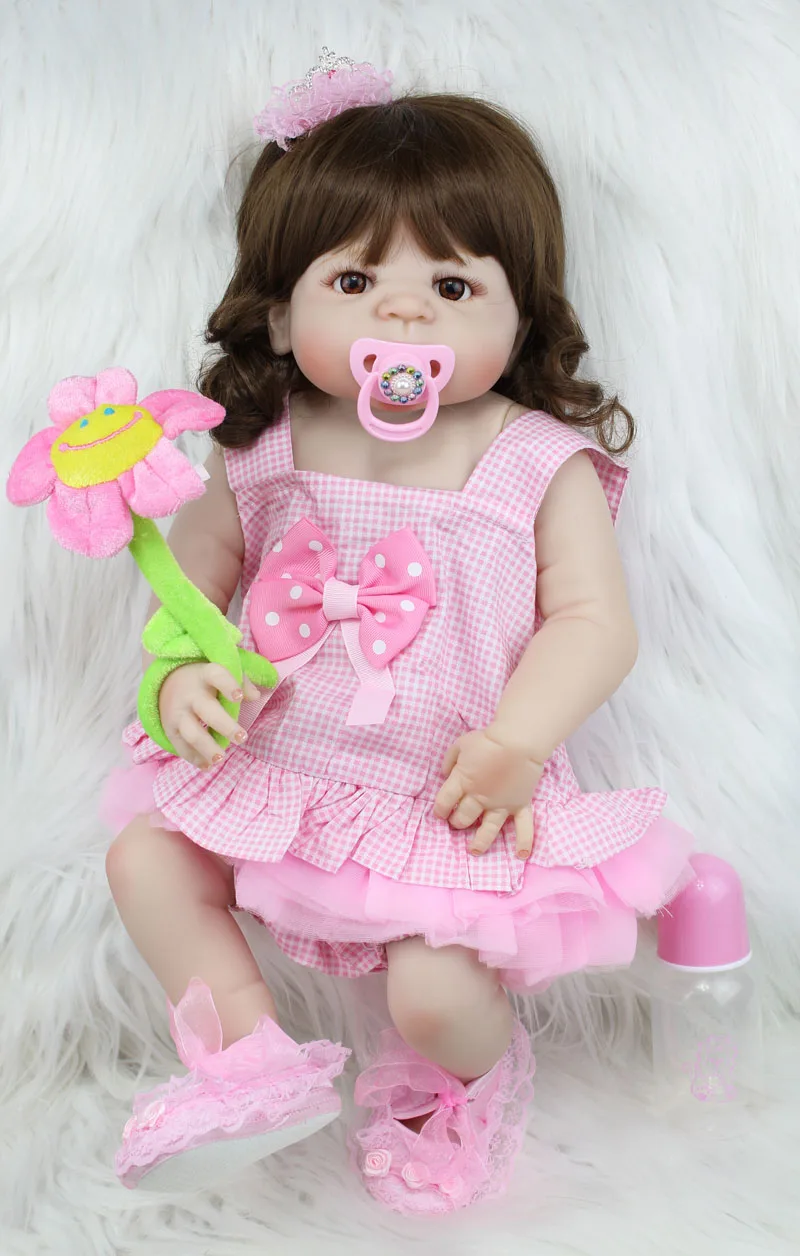 Wonderfull - 55cm Full Body Silicone Reborn Sweet Girl Baby Doll Toys Newborn Princess Toddler Babies Doll Birthday Gift Present Bathe Toys