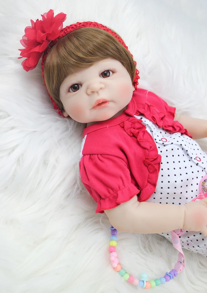 Very Recommended - 55cm Full Body Silicone Body Reborn Baby Doll Toys Lifelike 22inch Newborn Bebe Princess Toddler Girl Doll Waterproof Bathe Toy