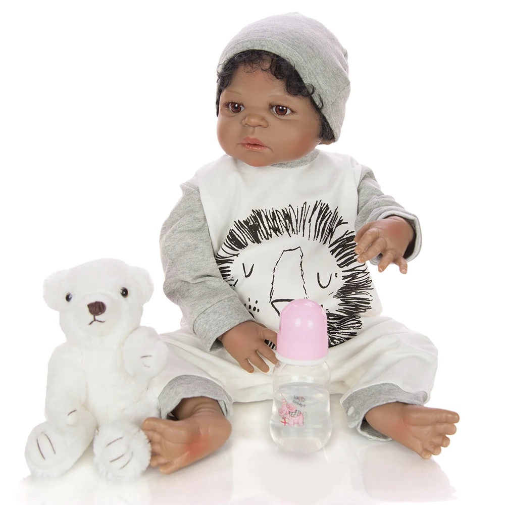 Wonderfull - Black baby dolls African American 23inch reborn silicone vinyl body 57cmnewborn poupee boneca baby toddler gift