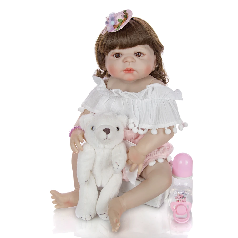 Price Comparisons For - curls doll toy 55CM lifelike reborn toddler bebe doll reborn baby girl silicone vinyl stuffed body children surprise gifts bath Best Price