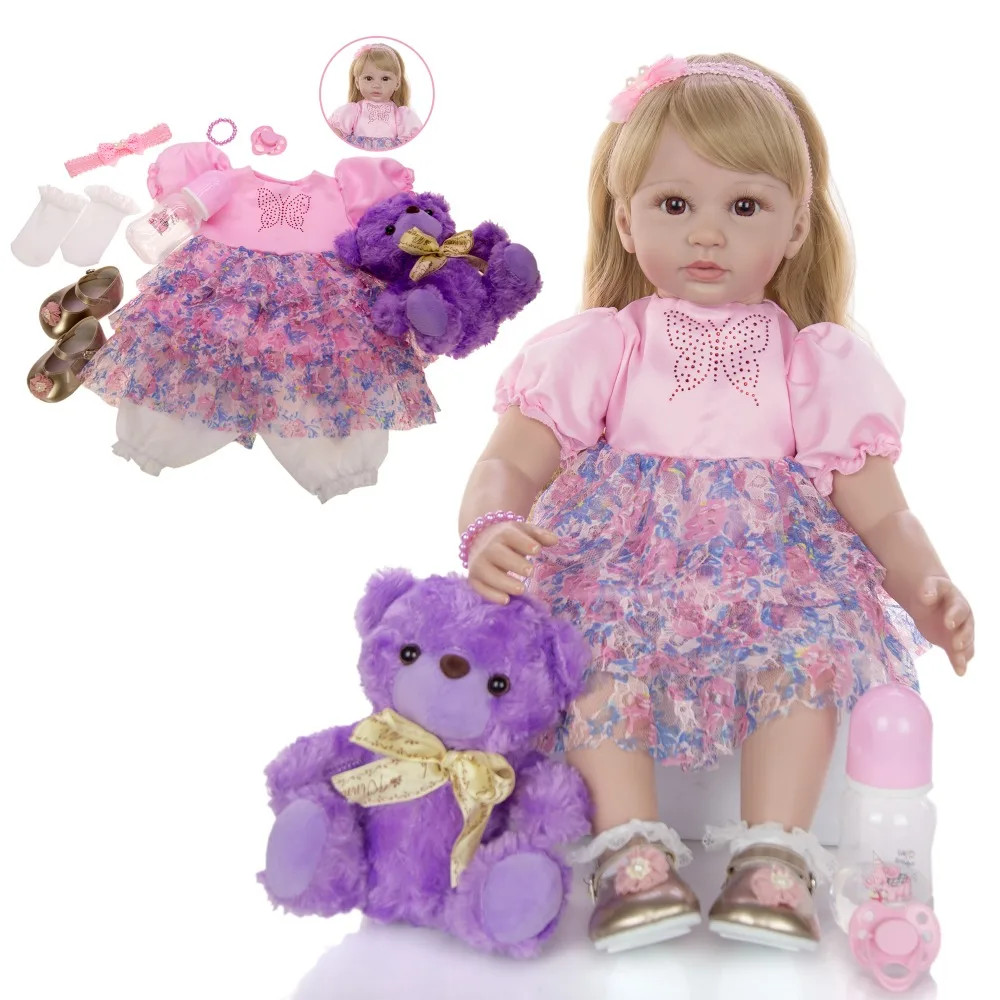 Low Price - 60cm Big Size Reborn Toddler Doll Toy Lifelike Vinyl Princess Baby With bear Cloth Body Alive Bebe reborn Girl Birthday Gift ^*Best Offers