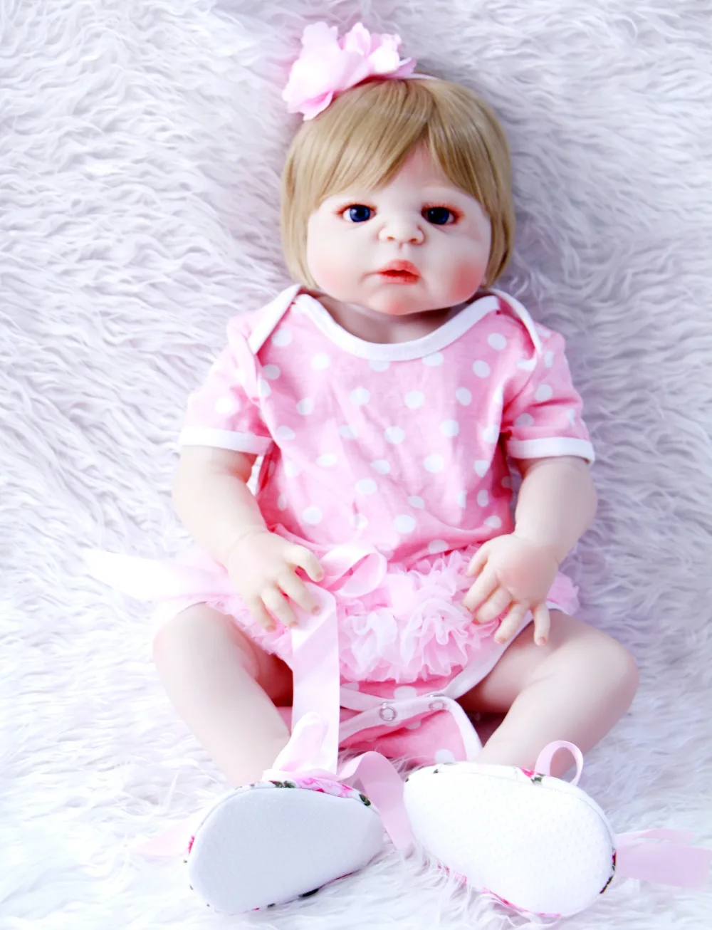 #Special Offers - 23\ Full Silicone Body Reborn babies newborn princess wear pink girl dress handmade adorable toddler dolls kids birthday gifts Wonderfull