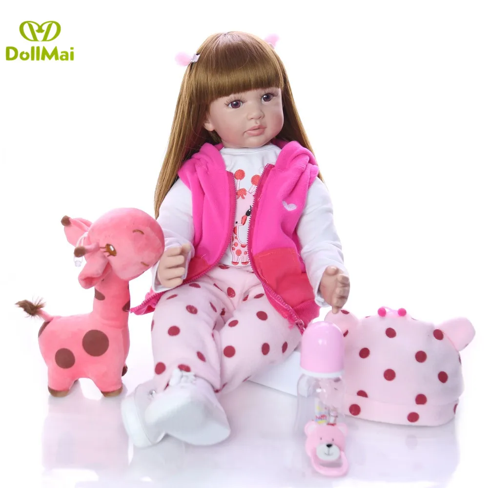 Compare Prices For - Big size 60cm silicone vinyl reborn baby dolls cotton body long hair girl princess bebe toddler reborn bonecas child gift toys ^Cheap