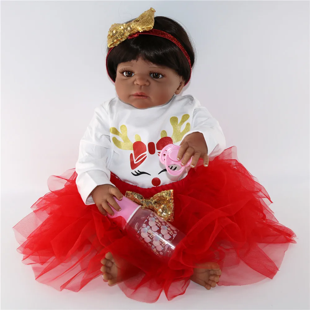Very Recommended - Black bebes reborn girl 57cm Full Body Silicone Reborn Baby Doll Toy Newborn baby Princess Toddler Doll Child Bathe Toy bonecas