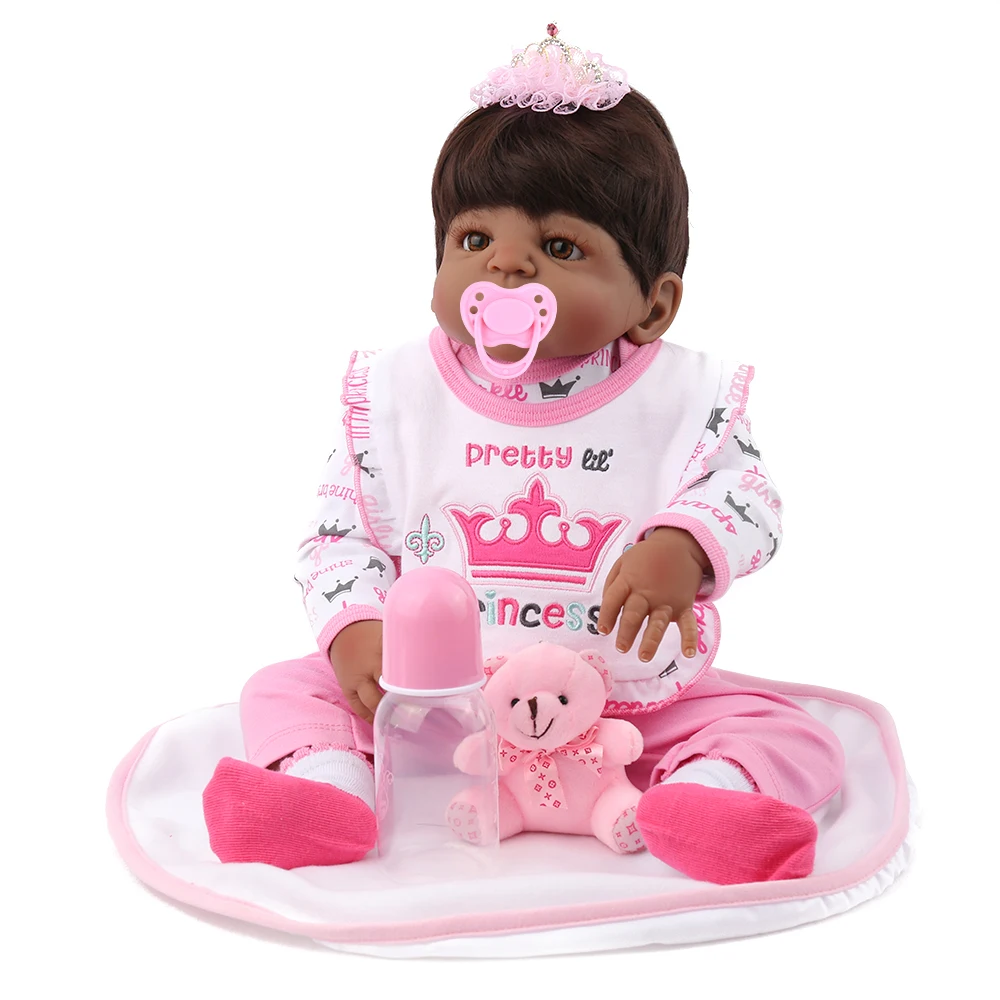 Very Good - 55CM Black Baby Doll Full Silicone Body Lifelike Reborn Doll Handmade African baby reborn toddler dolls