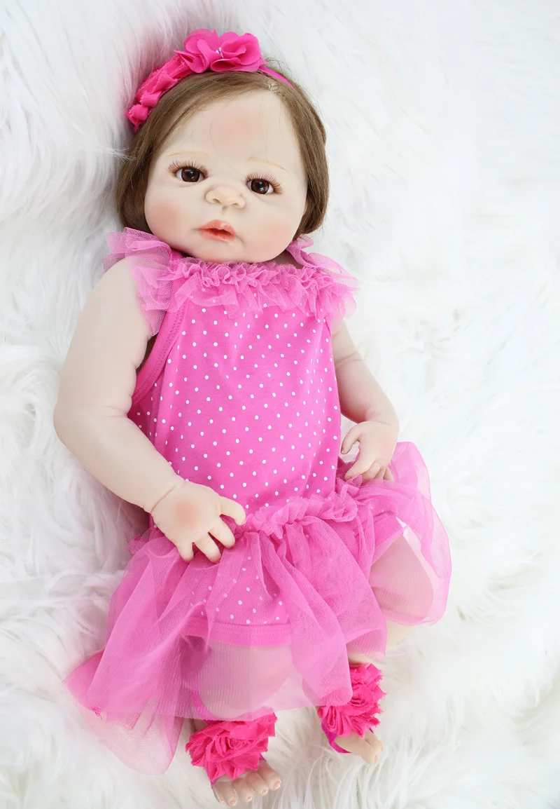 Lovely 22\ Full Silicone Reborn Baby Princess Girl Lifelike 55cm Vinyl Bebe Newborn Toddler Dolls Waterproof Body Rooted Hair
