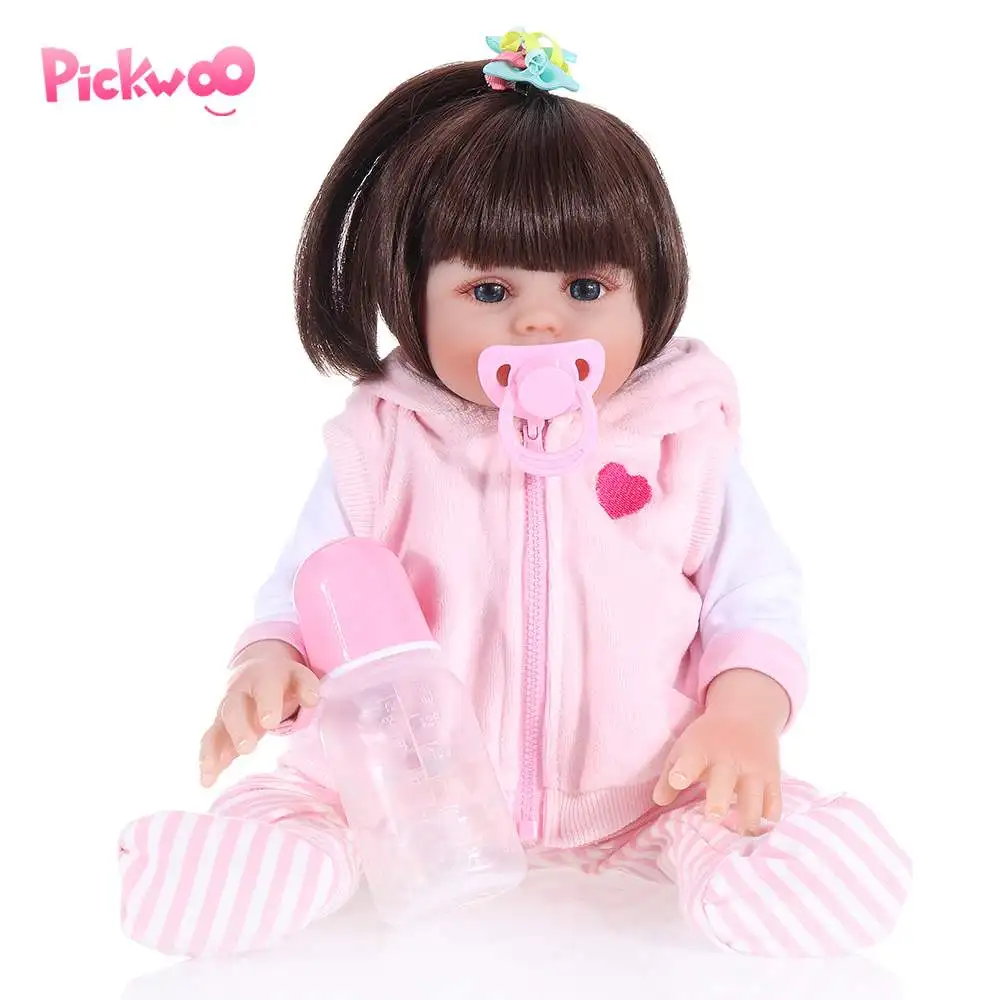 Wonderfull - Pickwoo 48CM Reborn Toddler Girl Doll in Pink Dress Full Body Soft Silicone Realistic Baby Bath toy Anatomically Correct