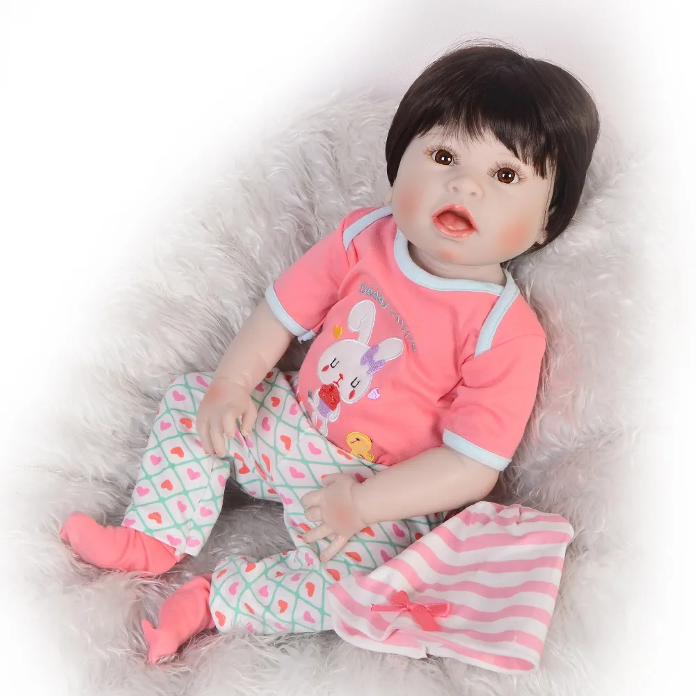 Very Good - 55cm White skin Reborn Baby Dolls Silicone Body Reborn Doll real girl Reborn Toddler Doll and Pink pacifier gift For Girls Toys